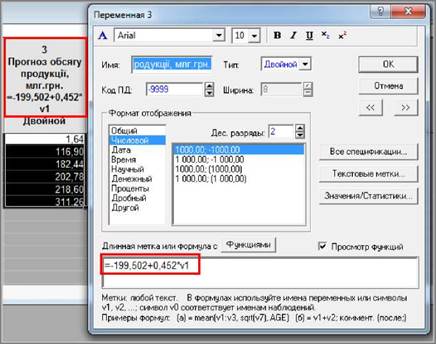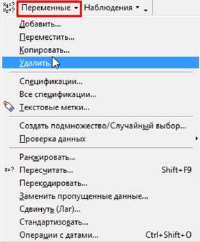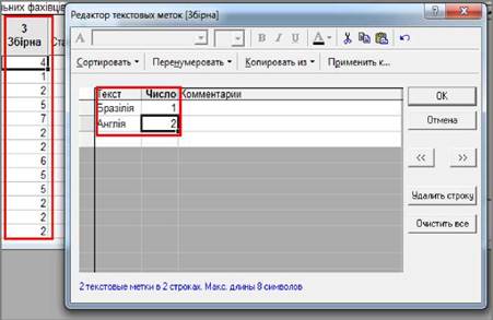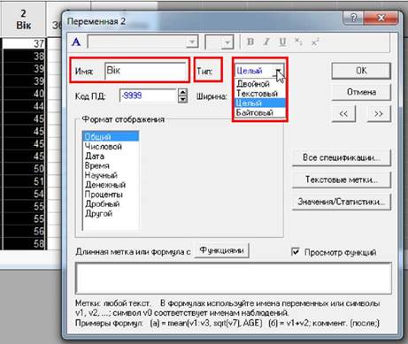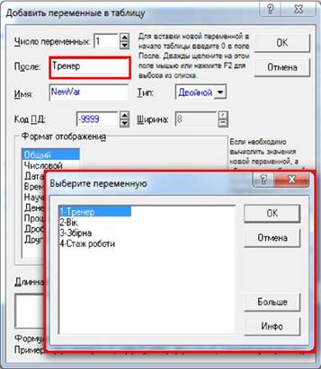 4. Встановити курсор в поле "Переменная", натиснути клавішу <F2> для виклику списку змінних і вибрати з нього змінну, значення якої будуть використовуватися як імена спостережень.