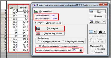 5. Вибір характеристик (змінних) для аналізу. Натиснути кнопку «Переменные» («Variables») і вибрати змінні для аналізу.