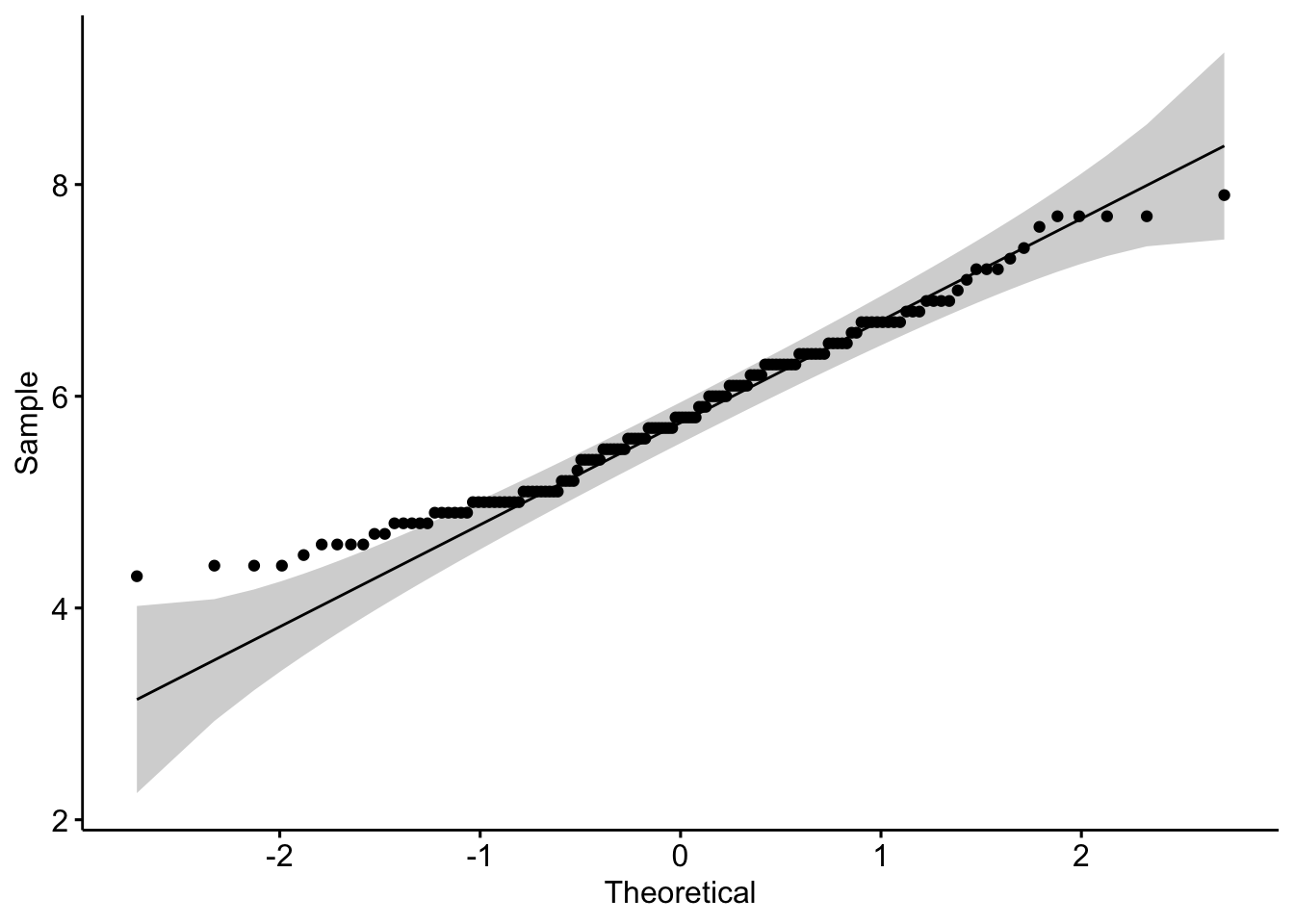 Normality tests such as Shapiro-Wilk or Kolmogorov-Smirnov tests can also be used to test whether the data follow a normal distribution or not. However, in practice, normality tests are often considered as too conservative in the sense that for large sample size, a small deviation from the normality may cause the normality condition to be violated. For this reason, it is often the case that the normality condition is verified based on a combination of visual inspections (with histograms and QQ-plots) and formal test (Shapiro-Wilk test for instance).↩︎
